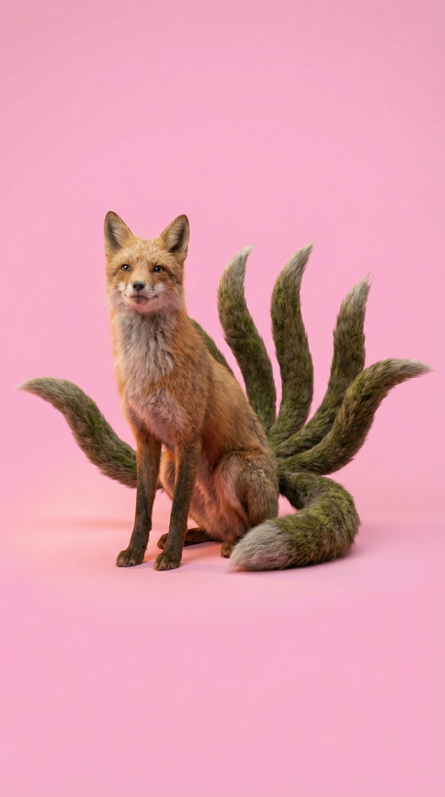 稲荷神社の深奥に棲むとされる伝説の妖狐。尾が九本に分かれた成熟個体で、通常の狐とは桁違いの知性と霊力を持つ。人間に化ける能力があるが、月夜には尾が隠しきれず正体を現す。WRASHIが最初に遭遇した妖怪であり、シリーズの始まりとなった存在。近づくと金色の毛並みから微かに線香の匂いがするらしい。